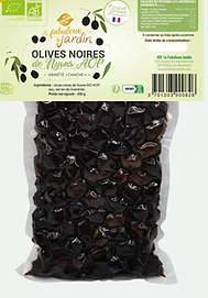 * Olives noires AOP de Nyons*Olives noires de Nyons BIO AOP, eau, sel bio de Guérande.